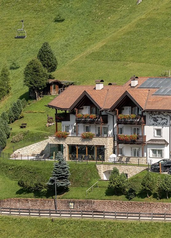 https://www.leck.it/ Residence Villa Leck Str. Col da Lech 16, 39048 - Wolkenstein Gröden (BZ)Tel. +39 0471 795355 https://www.chedul.it/ Apartments Chedul Str. Pitla Cir, 16 , 21, 39048 – Wolkenstein Gröden (BZ)Tel. +39 0471 795389 https://www.villaelvis.com/ Apartments Villa Elvis Str. Ciampinëi 27-31, 39048 – Wolkenstein Gröden (BZ)Tel. +39 0471 794639 https://www.apartments-clivia.com/ Apartments Clivia Str. Meisules 173, 39048 – Wolkenstein Gröden (BZ)Tel. +39 0471 794287 https://www.cesanueva.com/ Romantik Villa Cësanueva B&B Via Mëisules 300, 39048 - Wolkenstein Gröden (BZ)Tel. & Fax +39 0471 795425 https://www.astorsuites.com/ Astor Suites B&B Hotel Str. Puez 9, 39048 – Wolkenstein Gröden (BZ)Tel. +39 0471 795207 https://www.dolomieu.eu/ Hotel Dolomieu Frëina Street, 1-7, 39048 - Wolkenstein Gröden (BZ)Tel. +39 0471 795440 / 795217 https://www.la-tambra.com/ Garni Hotel La Tambra Str. Meisules 309, 39048 – Wolkenstein Gröden (BZ)Tel. +39 0471 795041 https://www.belvert.it/ Garni Hotel Belvert Str. Dantercëpies 55, 39048 – Wolkenstein Gröden (BZ)Tel. +39 0471 795514
